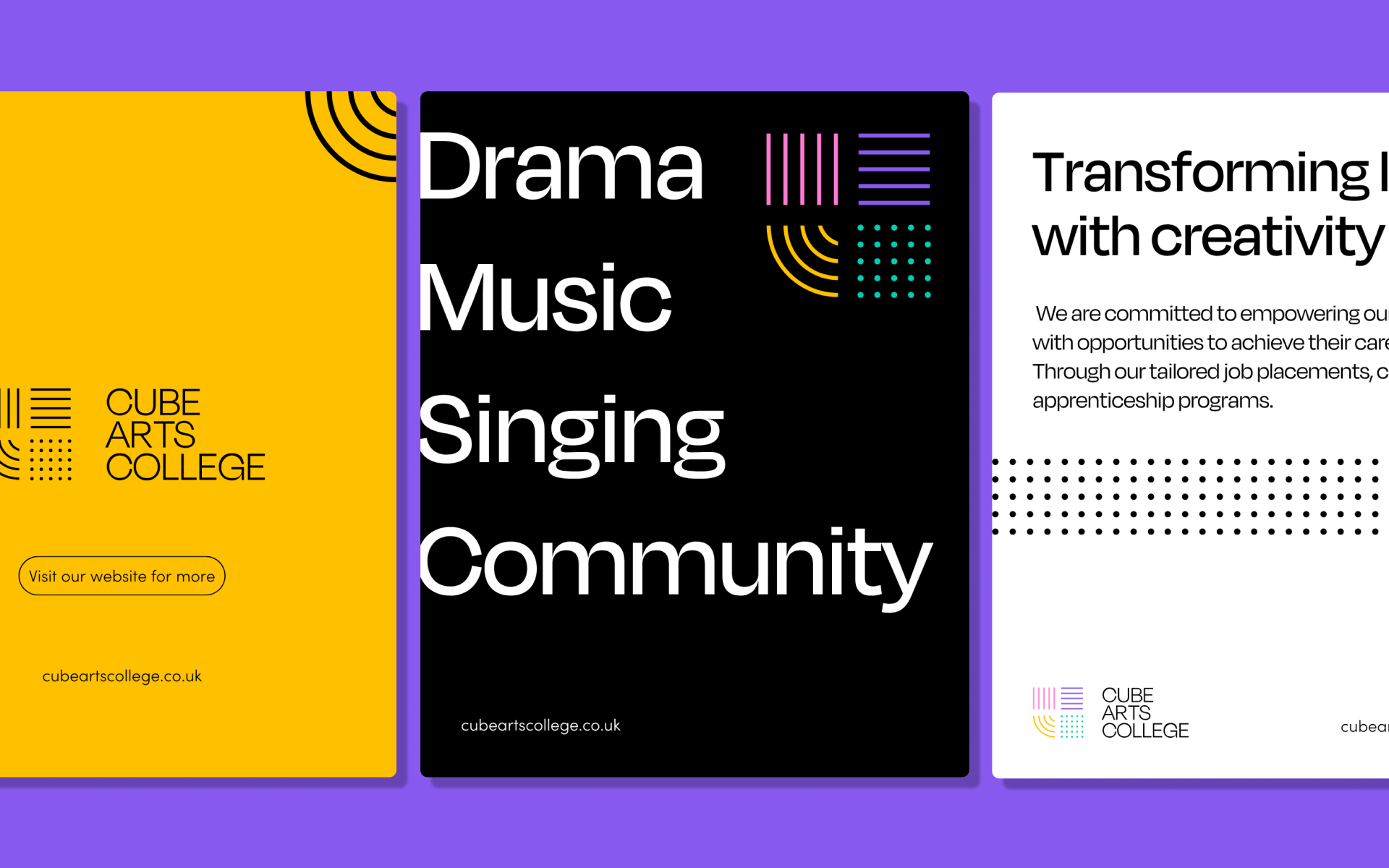 The Cube Arts College now has a brand that truly reflects the vibrant energy and boundless talent of their students. With better brand recognition across the community, increased enquiries from potential students, and most importantly, current attendees finally feeling properly represented, this rebrand has given them the platform they deserve to showcase their life-changing work.